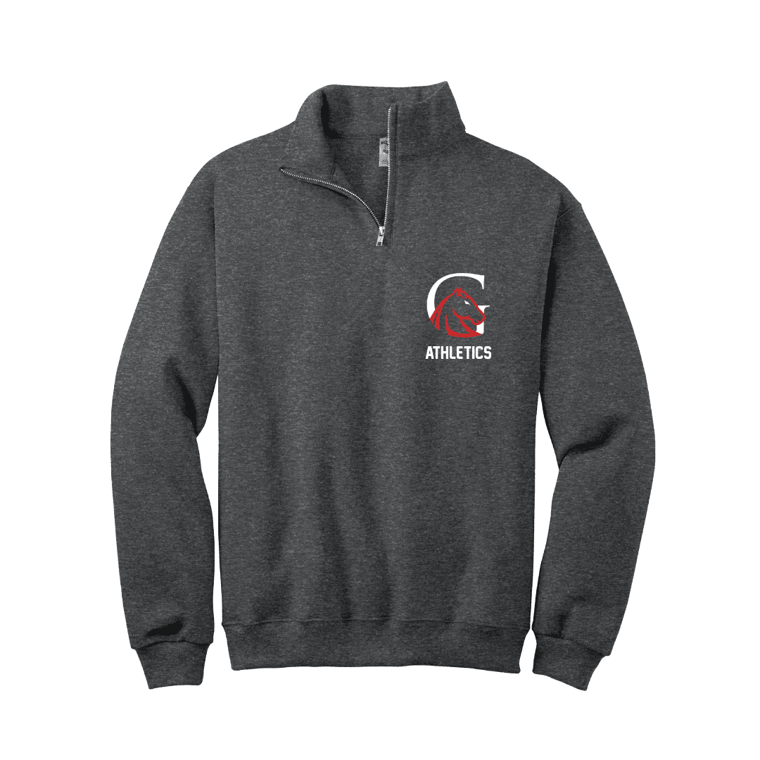 8-ounce, 50/50 cotton/poly NuBlend®; pill resistant fleece High-stitch density for a smooth-printing canvas Stylish zip-through cadet collar Covered aluminum zipper for maximum print area Rib knit cuffs and waistband Double-needle coverstitching on armholes and waistband Adult Sizes: XS–3XL Color: Black Heather