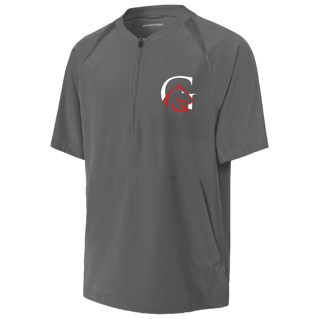 3.5-ounce, 90/10 poly/spandex 100% poly tricot mesh insert Snag-resistant Tag-free label Contrast tonal mesh panels at shoulder Front pouch pockets Adjustable fit at hem with side toggles Sizes: Adult XS-3XL Color: Grey