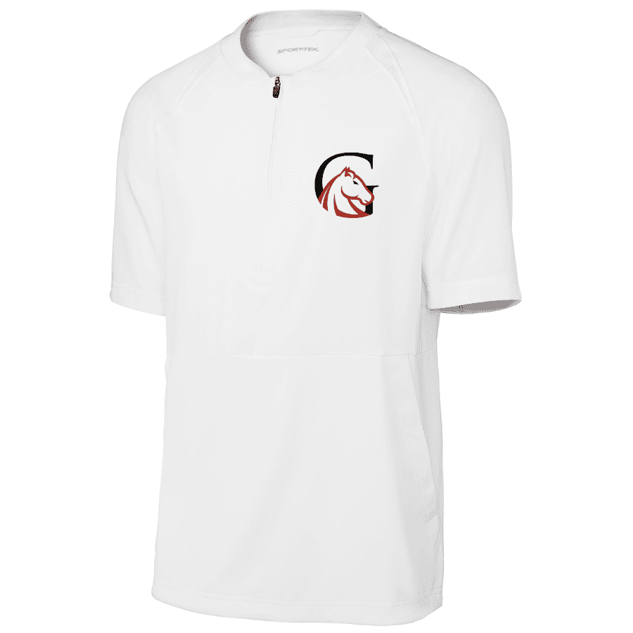 3.5-ounce, 90/10 poly/spandex 100% poly tricot mesh insert Snag-resistant Tag-free label Contrast tonal mesh panels at shoulder Front pouch pockets Adjustable fit at hem with side toggles Sizes: Adult XS-3XL Color: White